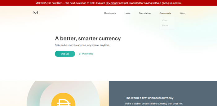 Sky, formerly known as MakerDAO, is a decentralized protocol that powers the DAI stablecoin through collateralized debt positions (CDPs).